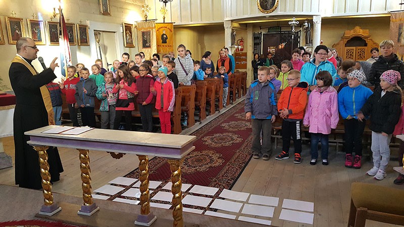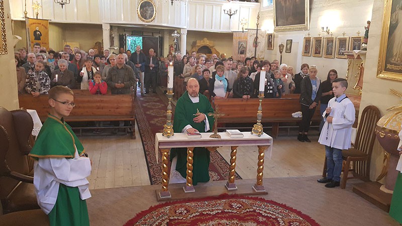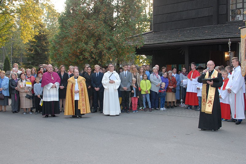 Przed drewnianym kościołem z II połowy XVIII wieku, powitali je parafianie - a wśród nich czwórka młodych, którzy przygotowywali się do przyjęcia sakramentu bierzmowania - razem ze swoim proboszczem ks. Maciejem Jenknerem, biskupem Piotrem Gregerem i duszpasterzami dekanatu wiślańskiego.